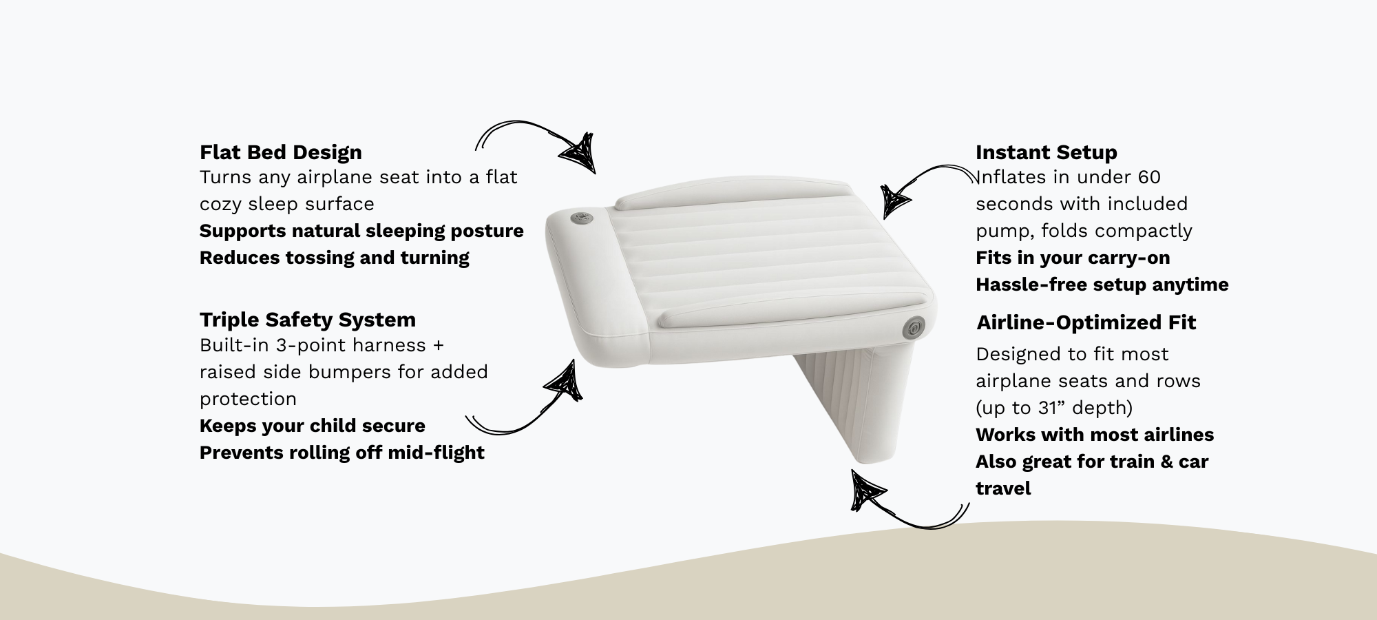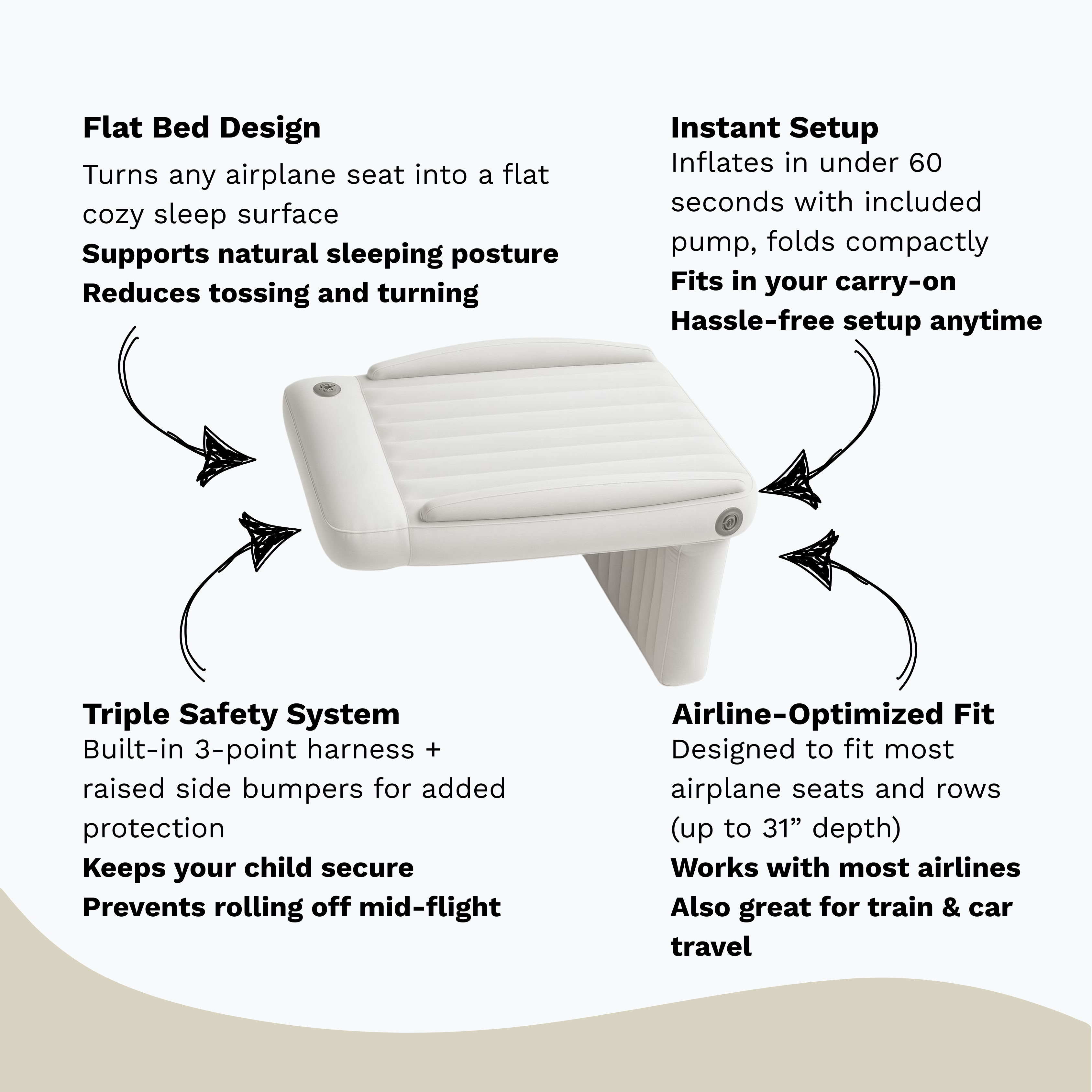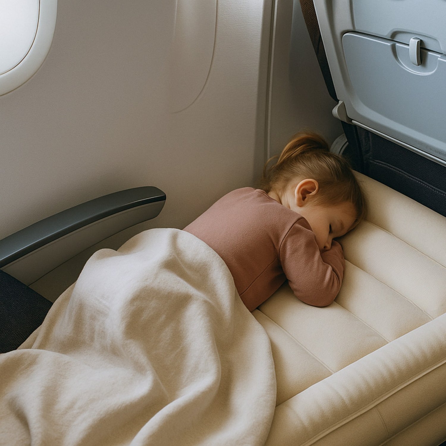 Everything your child needs — for comfort, safety, and sleep at 30,000 feet.